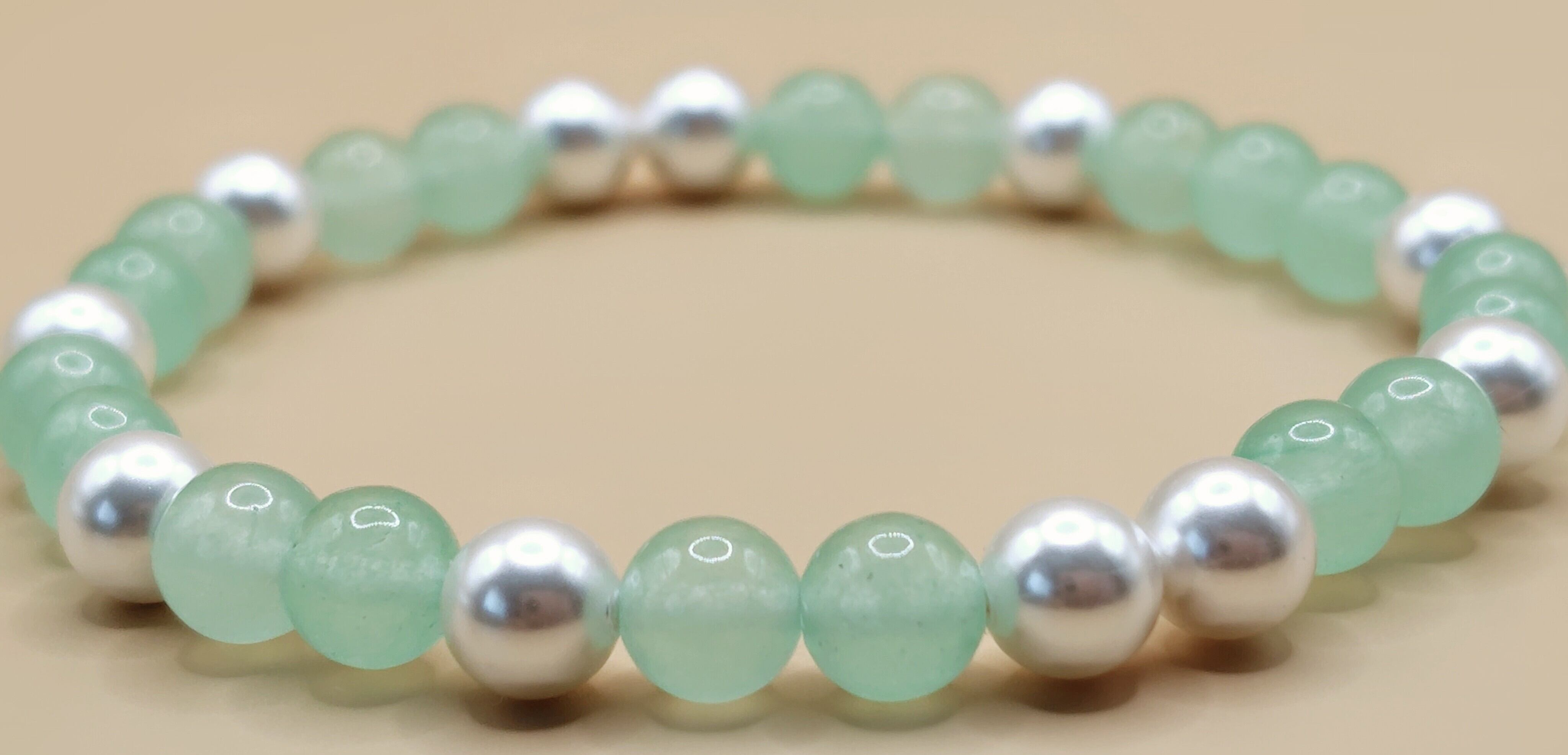 グリーンジェードパールで爽やかな色合いにしました!これからの季節に爽やかなブレスレットで魅力アップするかも!?